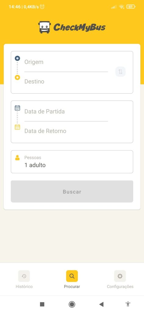 Uma vez que você tiver baixado e instalado o aplicativo Check My Bus no seu celular, você terá acesso completo e gratuito para pesquisar passagens de ônibus. Confira como utilizar: