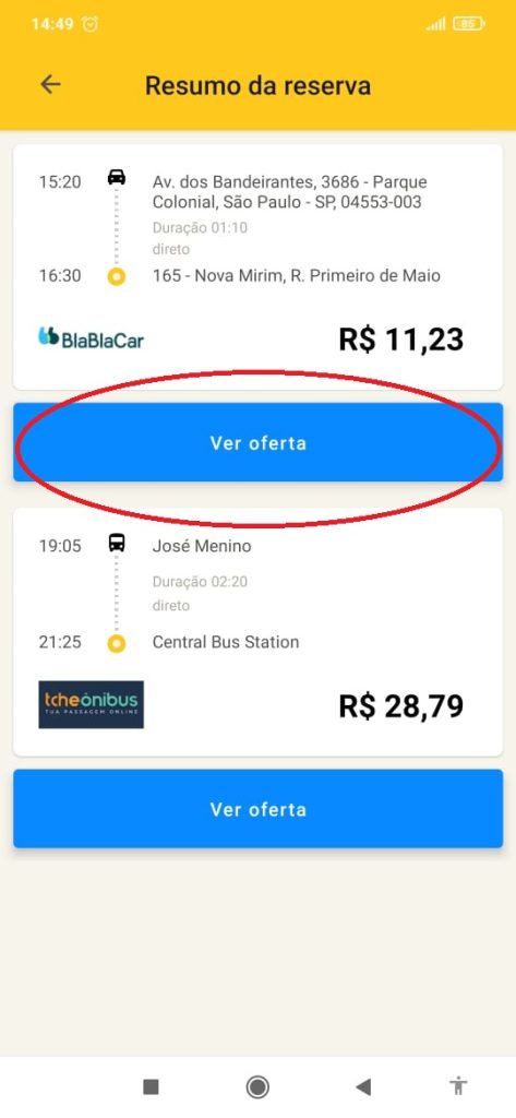 Encontre a melhor opção de passagens de ônibus para você. Clique em cima da opção desejada. Clique em “Ver Oferta”.
