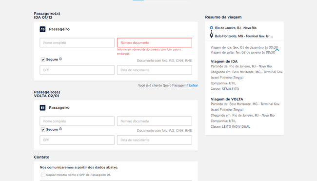 - O processo se repetirá para escolher os detalhes da passagem de volta (se desejar);