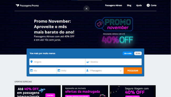 Nessa plataforma, é possível encontrar vários benefícios. Destaque para a possibilidade de encontrar passagens promocionais, que podem te fazer economizar dinheiro.