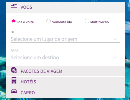 Para isso, basta inserir as informações do seu voo, informando em primeiro lugar se você deseja uma passagem apenas de ida, também de volta ou multitrecho.