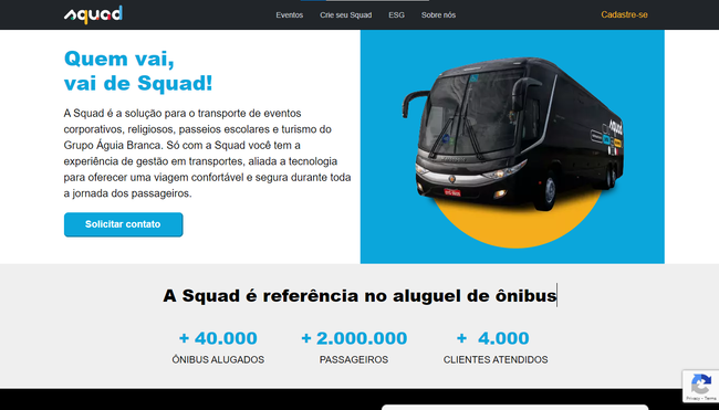A Squad Viagens é uma empresa que pode atuar com transfer de passageiros em eventos (shows, eventos esportivos e entre outros) e no fretamento de ônibus para excursões e outras ocasiões.