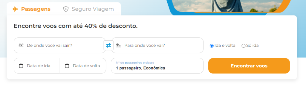 Além disso, você deve informar se busca uma passagem apenas de ida ou também de volta, além das datas da viagem.