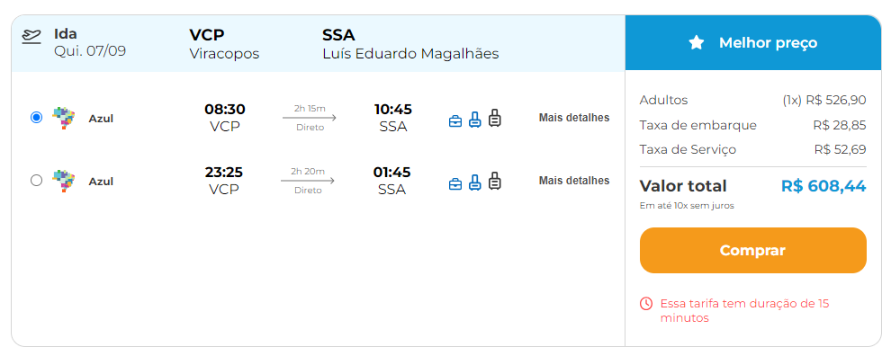 Sendo assim, na nova página aberta será possível visualizar os preços, os horários dos voos e todas as informações sobre a passagem.
