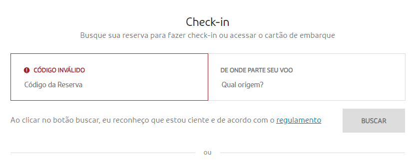 - Digite o código localizador da sua viagem e o seu sobrenome ou aeroporto de origem;