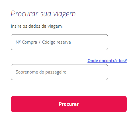 - Informe o código de reserva do seu voo e o seu sobrenome;