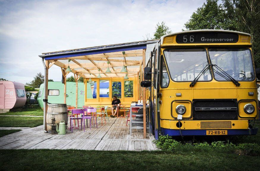 O local é tão encantador e colorido que alguns se sentem adentrando no próprio cenário do antástico Mundo de Oz! O local conta com uma cozinha externa, um ônibus amarelo brilhante onde você pode tomar café-da-manhã e os quartos são trailers separados, muito confortáveis e charmosos.