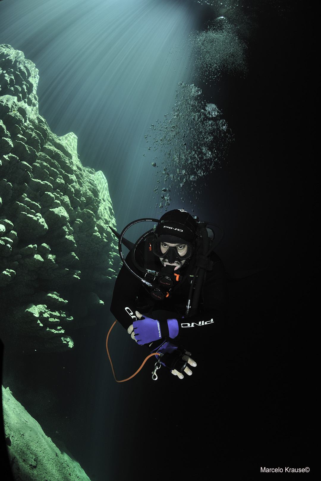 Olhando de cima, se vê apenas uma pequena fenda no chão, mas com a descida de Rapel, a descida vertical até o fundo da caverna é de 72 metros, o que equivale a um prédio de 26 andares.