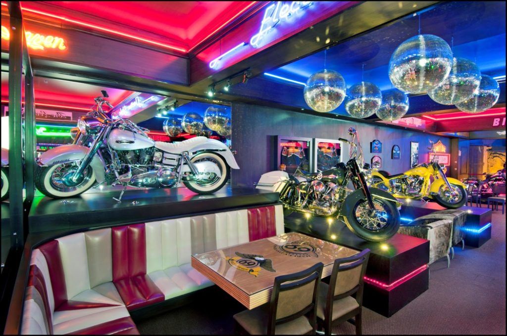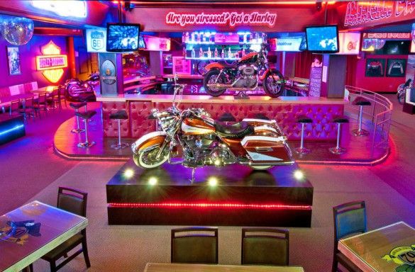 Harley Motor Show, é um bar/museu onde toda a sua decoração é inspirada em motocicletas Harley-Davidson. Super moderno e colorido, o bar/museu também é super visitado.