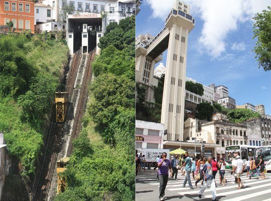 O Elevador Lacerda possui 72 metros de altura, onde liga a Praça Tomé de Souza (parte alta) à Praça Cairu, onde fica o Mercado Modelo. As viagens duram cerca de apenas 30 segundo e transportam em média 20 mil pessoas por dia.