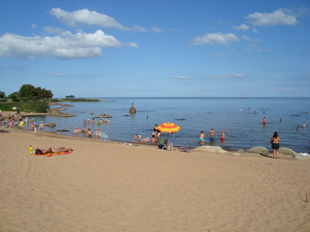 Uma praia muito tranquila, mar frio e os visitantes podem atravessar a cidade por meio do passeio de balsa, e o melhor, a vista é linda.
