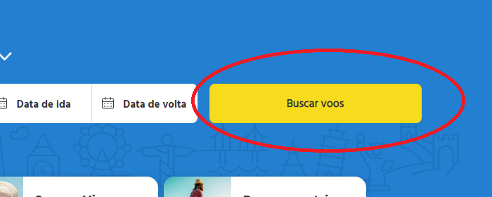 Na página inicial, insira os seus dados de viagem: Origem, Destino, Data de Ida e Data de Volta.
